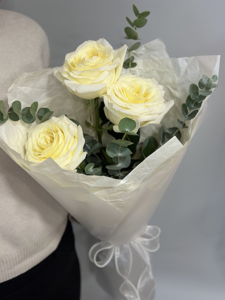 Монобукет из роз с эвкалиптом