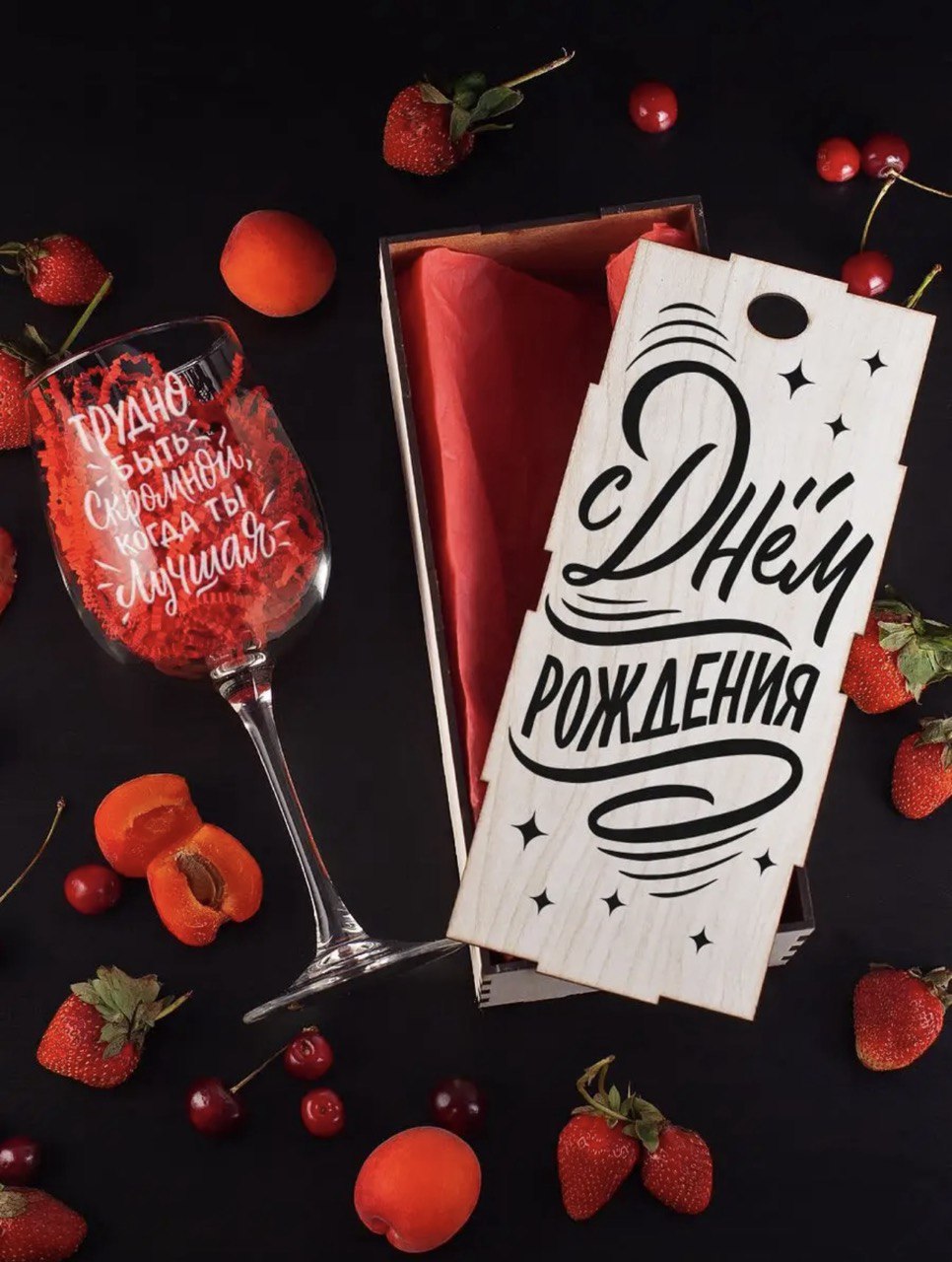 Бокал с гравировкой в подарочной деревянной коробке