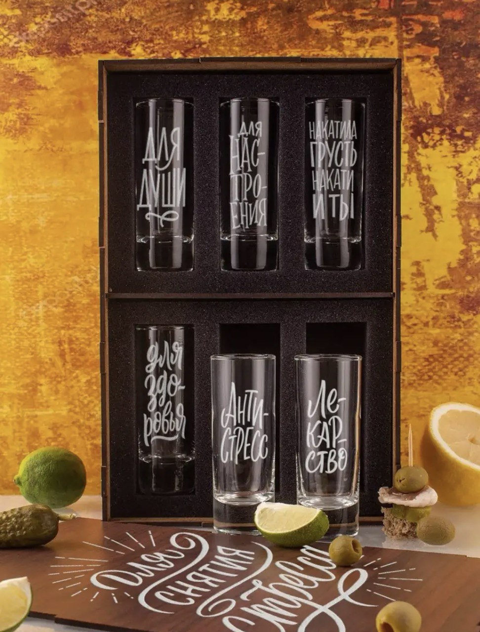 Набор стопок с гравировкой в деревянной коробке